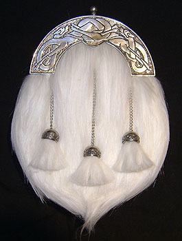 Dress sporrans > Celtic Dogs crossed/straight faux fur - white - Vegetarian Sporrans - Vegan animal free leather sporrans and belts