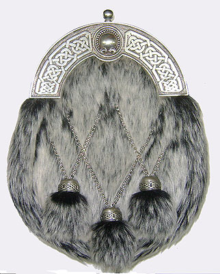 Grey dress sporran with a celtic torque cantle (Pewter top) The sporran is made with lorica and faux fur and is availble with either crossed or straight tassels.