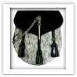 Semi dress sporran with grey faux fur and black hand woven tassels The sporran is made with lorica and faux fur The lock is availble in either an antique silver or antique brass finish.